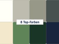 Wählen Sie aus 8 Trendfarben, oder entscheiden Sie sich für eine natürliche Holzmaserung, die durch eine von 8 Lasuren geschützt ist.